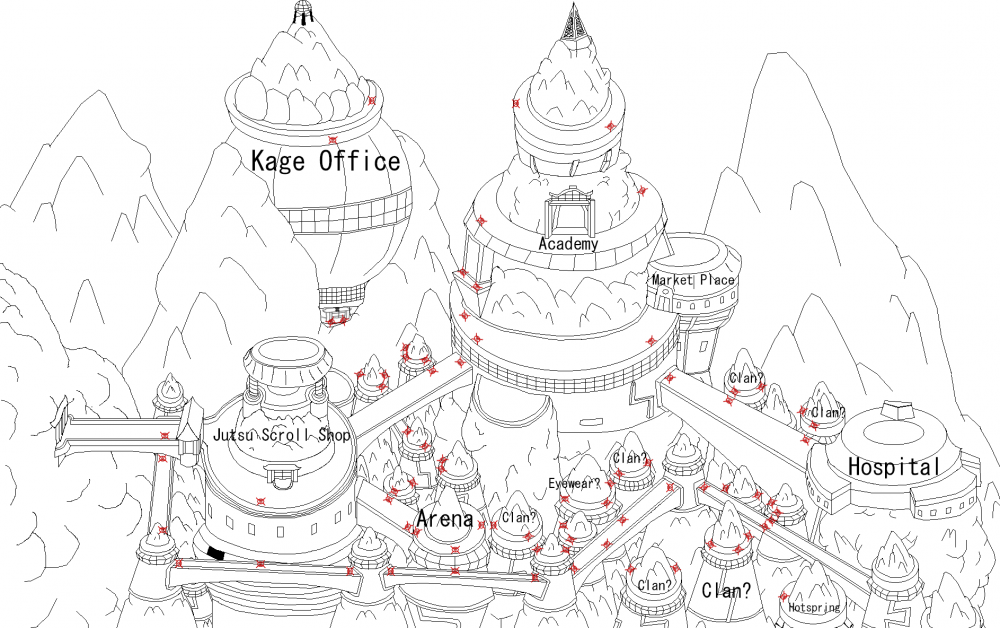 After listening to @Ueda and @Serias talk about the vision of the game and the amount of effort that went into implementing the Hidden Mist Village and the Hidden Sand Village me and my friend @SpellWiz started brainstorming ideas and a village layout for the Hidden Cloud Village. This is what we came up with, because Rory and Serias appreicate any playermade content that could contribute to future development and success of NinOnline Basic line-art of cloud village layout I imagine use of flicker pads and bridges to traverse the village Exclusive Passive: Body Flicker range is increased by 2 tiles. Decently balanced mastery. Similar to Sand's perfect cloak. Due to the Cloud Village's structure, it's ninja have adapted to traverse the large gaps. Exclusive Combo Mastery: Laser [Water / Lightning] Ninja from the Cloud Village have passed down techniques that utilize Storm release to create focused lasers. Exclusive Alternate Mastery: Cloud-style Kenjutsu [Weapon Master] Agility-locked sword(s) with agility-based weapon master skills. Can use strength-based weapon master skills with the cloud-locked swords, and vice versa. Agility and strength-based weapon master skills share respective cooldowns. Any cloud-locked swords have lower base-damage than current swords, but higher attack speed. Level 10: Cloud-style Backlash Slash Free-aim-based skill. Charge and perform an upwards slash, interrupting casting jutsu on-hit. 1-2 tiles directly in-front of the user and 2-1 second standing-running cast-time based on level. Level 15: Cloud-style Reverse Beheading Free-aim-based skill. Spin instantly, dealing damage to all enemies within 1 tile. 1s - Instant cast-time based on level, 1 tile radius in all directions. Level 20: Cloud-style Riposte Free-aim-based skill. Users swiftly lunge forward creating an extended range of up to 3 tiles. 3-2 second running cast-time based on level. Level 25: Cloud-style Afterimage Strike Target-based skill. After seemingly splitting into 3 from the intense speed, users instantly move in-front of and attack their target up to 3 times instantly. 2-1 second running cast-time and 3-7 tile range based on level. The user briefly appears surrounding the target on all sides except directly behind them, and any spots unavailable reduce the amount of hits. Level 30: Cloud-style Deception Beheading Substitution-based skill. The user feigns Substitution Technique, preparing to counter. Before receiving an attack, they reappear right in-front of the attacker and launch a counterattack. Level 35: Cloud-style Crescent Moon Target-based skill. Makes the user instantly move in-front of their target and widely slash, creating a large crescent shape hitting all enemies within 2 tiles on all sides of the user, except directly behind. 2-1 second run-cast and 2-4 tile range based on level. Exclusive Summons: Drill Bird Walk/Flicker. Lunges forward to attack head-on with it's beak, creating an extended range. (2-6 tile range based on level) Not as ugly or huge as Pain's monster. Baku Stationary/Target-facing. Pulls in all enemies in a cone-shaped radius. (3-7 tile furthest-point range and 1-2 tile knockback towards summon based on level) Not as huge as Danzo's monster. Or a simpler elephant. Exclusive Organization: Kinkaku Force 5 Members. Aimed to be a heavy team-play based squad. Bashōsen (Fan): Weapon-slot item with jutsu-on-basic. Random large-scale element-based attack is released on auto-attack. High damage, as well as effects based on element. Cost 100 chakra per-cast. Gives 25 intellect. Kohaku no Jōhei (Pot): Weapon-slot item with jutsu-on-basic. On use, pulls target towards snared user. (Think 1 tile knockback towards the user, 2 tiles if target is below 50%) Consumes 100 chakra per-second. If a target is touching the user, while below 20% health, they are killed and instantly sent to their hospital and counted as a kill for the pot's user. Gives 25 fortitude. The next three are a testament to the "team-play" design of the organization Kōkinjō (Rope): Weapon-slot item with jutsu-on-basic. Upon the user successfully landing an auto attack on a target without "Word Soul Leak", "Word Soul Extract", "Word Soul Seal", nor "Word Soul Sentence" debuffs, 100 chakra is consumed and the target receives the "Word Soul Leak" debuff for 30 seconds. Gives 25 agility. Shichiseiken (Sword): Weapon-slot item with jutsu-on-basic. Upon the user successfully landing an auto attack on a target with "Word Soul Leak", 100 chakra is consumed, the target's "Word Soul Leak" is removed and they receive the "Word Soul Extract" debuff for 30 seconds. A linked, targetable and invincible, "Word Soul" mob is spawned at the location for the debuff's duration. Gives 25 strength. Benihisago (Gourd): Weapon-slot item with jutsu-on-basic. Only with a "Word Soul" mob as a target, on use the user pulls the target towards themselves. (Think 2 tile knockback towards the user) If the target touches the user, it is unspawned and whomever it is linked to has "Word Soul Leak" removed and receives the "Word Soul Seal" debuff for 30 seconds. After "Word Soul Seal's" duration you receive "Word Soul Sentence" for 30 seconds, during which you are pulled toward the gourd's user. (Think 2 tile knockback towards the user, 3 tiles if target is below 50%) Anyone touching the gourd's user while under the effects of "Word Soul Sentence" are killed and instantly sent to their hospital and counted as a kill for the gourd's user. Consumes 50 chakra per-second while pulling anyone. Insignificant chakra results in the inability to pull "Word Soul" mobs, as well as no one with "Word Soul Sentence" being pulled in. Those affected by "Word Soul Sentence" are only pulled while the gourd is equipped. Gives 25 chakra. Cloud Village is years-away content, and I expect literally nothing to come of this post besides simple chatting. For most things I have given example cast-times, ranges, etc. but more balancing would be required for any actual 