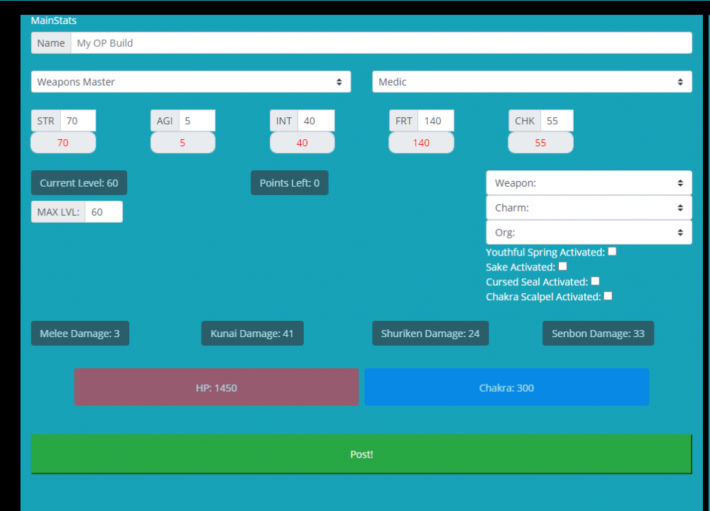 2. This post was made in collaboration with @Yamikami The suggestion is to rebalance end-game land of iron swords because they are currently too powerful, and provide a level of power-creep that is IMO too high. Previously, the Bone sword was the highest DPS sword in the game, so I will be using this sword as a comparison to analyse and put into numbers just how much the difference in DPS is between this and the new swords, leading them to be much stronger than what I would consider reasonable. I will be using Bone Sword as a baseline for comparison to other swords since I think that it's a pretty well balanced high STR weapon. Here is a key to show you what sword is being mentioned when numbers are used: Bonesword Yamazaru Jakuma Bone Sword ( 110 STR, 36 base damage, 0.8 sec speed, health regen, legendary, lvl 50) Yamazaru (120 STR, 55 base damage, 0.8 sec speed, +3 fortitude, health regen, legendary, lvl 59) Melee @120 str: 72 vs 91 Kunai @120 str: 60 vs 70 Adjusted for Damage Per Second: Melee: 90 vs 114 Kunai: 30 vs 35 Total: 120 vs 149 This is a 24.2% DPS increase. To put perspective on just how much of a difference this is, +5 points (for gaining a full level) invested into strength gives you a ~1.9% DPS increase. This is the equivalent of 64 str points difference (the equivalent of almost 13 levels). Jakuma (100 STR 40 CHA, 55 base damage, 0.8 sec speed, +3 chakra, chakra regen, legendary, lvl 59) Melee @100 str: 66 vs 85 Kunai @100 str: 55 vs 64 Adjusted for Damage Per Second: Melee: 82.5 vs 106.25 Kunai: 27.5 vs 32 Total: 110 vs 138.25 This is a 25.7% DPS increase. You can see this sword offers a similar level of power as yamazaru, with the equivalent of 67.6 str points difference (equivalent of 13.5 levels worth of points). Suggested change Obviously, fights are not people standing still hitting every melee on cooldown, but these calculations offer an indication of just how strong these swords really are. The swords offer an unparalleled DPS increase which is not matched even remotely closely by any other upgrade in the game. The minimum viable change in my opinion would be to reduce the attack speed of these swords to 1.2 seconds per swing from 0.8 seconds. This would reduce the monstrously high DPS increase the swords offer and still provide a great upgrade while keeping the integrity of the weapon as an end-game sword.